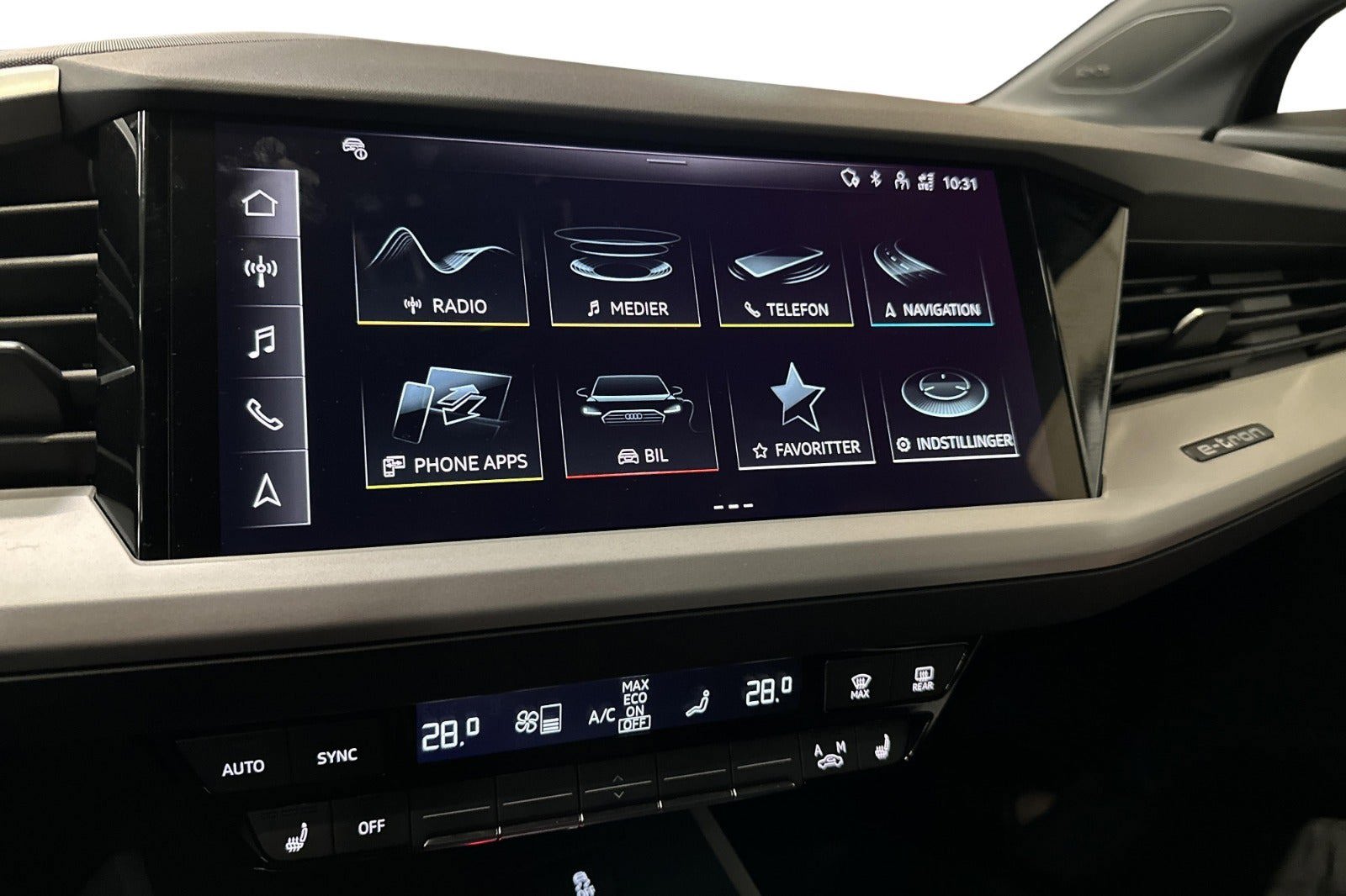 Oplev Audi Q4 e-tron Progress – en elektrisk SUV med Winter Selection pakke for optimal komfort, god lyd fra Sonos Premium Soundsystem og praktisk svingbart anhængertræk til både hverdag og eventyr. Med mulighed for 5 års garanti fra 1. registreringsdato kører du sikkert og trygt ind i fremtiden.