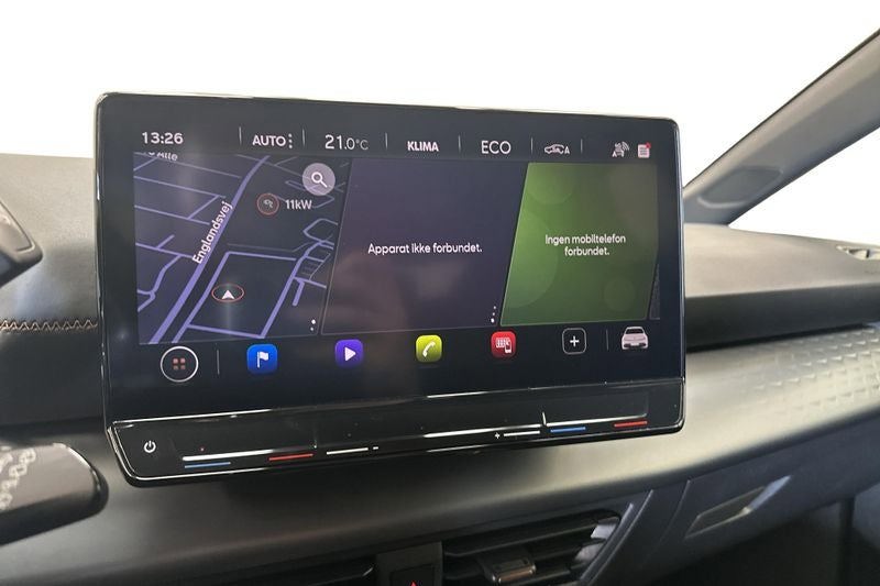 Øvrigt udstyr: VARMEPUMPE, Blindvinkelassistent, Parkeringsassistent for/bag, Adaptiv fartpilot, CUPRA sattelit knapper, KESSY (Keyless/Nøglefri betjening), TECH L udstyr (Trådløs telefonoplader mm.), Apple Carplay & Android Auto, Navigation, Ambiente belysning, Varme i rattet, Mørktonede bagruder mm.